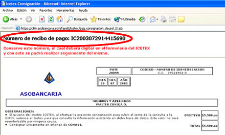 Ejemplo de la Estructura del Número de recibo de pago CIFIN